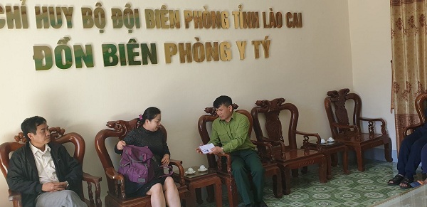 Trung tá Đinh Văn Lào - Bí thư Đảng ủy, Chính trị viên Đồn Biên phòng Y Tý Bộ đội Biên phòng tỉnh Lào Cai đến thăm dân bản cùng Đoàn