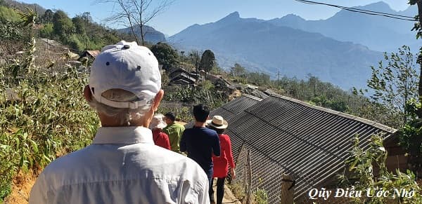 Ngôi nhà đầu tiên được tới thăm là gia đình cụ Giàng Thị Mây. Trong nhà tối thui có mỗi ánh điện lờ mờ, đứng một lúc lâu chúng tôi vẫn ngơ ngác không biết nhà cụ giường đâu, bếp đâu. Tìm mãi mới được cụ vén tấm bạt cáu bẩn lên. Ôi cái đó hóa ra được gọi là giường. Loay xoay thiếu chút nữa là chúng tôi va phải vật gì đó trên đất. Nhìn kỹ lại hóa ra hai đứa bé, nằm còng queo trên tấm bạt.