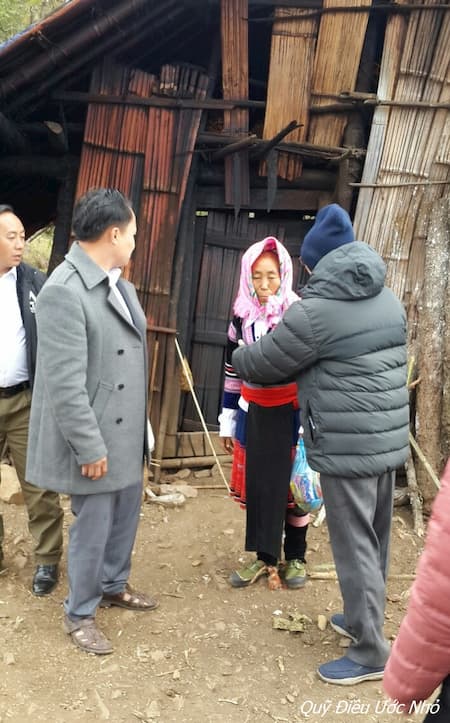 Trường hợp gia đình cụ Ma Thị Mao thì may mắn hơn. Bà là mẹ liệt sĩ nên được nhà nước xây cho một ngôi nhà tình nghĩa. Ngồi nhà đúng nghĩa là chỗ che mưa che nắng, nhà trống không, chỉ có vài bao ngô. Con dâu bà Giàng Thị Công nhận thay mẹ quà tặng của chương trình.