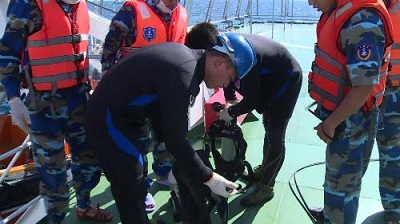 Người nhái tham gia trục vớt thi thể và động cơ máy bay sáng nay. Ảnh: QPVN.