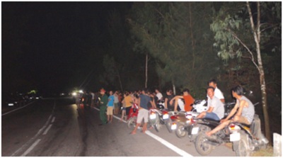 Hàng trăm người dân chờ đợi giữa đêm khuya để đón Thượng tá Khải trở về.