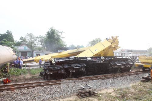 Khoảng 7h sáng 11/3, cần trục cứu hộ chuyên dụng di chuyển trên đường ray của ngành đường sắt khi đưa cần cẩu ra để chuẩn bị nâng toa tàu gặp nạn trong đêm đã bất ngờ bị lật. Tại hiện trường, cần trục bị đổ nghiêng về phía quốc lộ 1A. Đến 9h30, hai xe cẩu 100 tấn tiếp tục được ngành đường sắt điều từ TP Huế ra cứu hộ. Công việc ưu tiên là cứu hộ cần trục trước. Nhiều cần cẩu hạng nhẹ khác cũng được huy động để đẩy nhanh tiến độ giải phóng hiện trường.