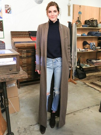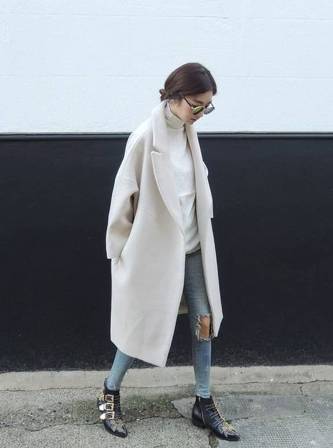 Set đồ đơn giản, bụi phủi nhưng vẫn sành điệu, thời trang với jeans rách, áo len cao cổ, áo khoác dáng dài và boots cổ ngắn.