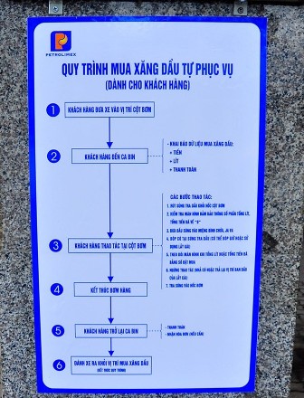 Bảng hướng dẫn quy trình “tự phục vụ” cho các khách hàng đến mua xăng