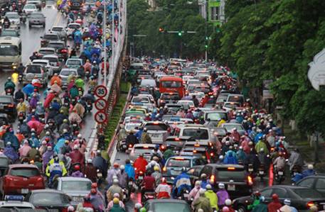 Tại một số tuyến đường không ngập nước, lượng xe đổ về đông khiến giao thông ủn tắc nghiêm trọng