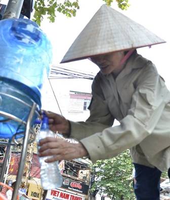 Tại số nhà 139/12 trên con phố Nguyễn Thái Học (quận Ba Đình, Hà Nội) một người phụ nữ đã đặt bình nước lọc và có dán dòng chữ "nước lọc miễn phí" phục vụ người dân từ 8 giờ sáng đến chiều tối.