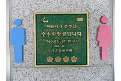 Ảnh chụp tại Nhà vệ sinh của Bảo tàng Quốc gia Hàn Quốc. Nhà vệ sinh này đoạt giải “Nhà xí tốt nhất Seoul” chứng tỏ đã diễn ra một cuộc thi giữa các nhà vệ sinh công cộng trên phạm vi cả Seoul.