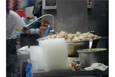 Ngó nghiêng vào nhà bếp của hàng cháo gà ăn ở bài trước. Được cái hàng quán nào bên Hàn Quốc cũng có toilet sạch sẽ nên cũng tin tưởng hơn vào vệ sinh an toàn thực phẩm. Trong bếp họ dùng toàn đồ inox, trông rất yên tâm, không mất cảm tình như ở ta chuyên dùng rổ rá chậu lọ nhựa. Gà được chất đống trong một chậu inox to, không bị vứt trên sàn nhà là được rồi.