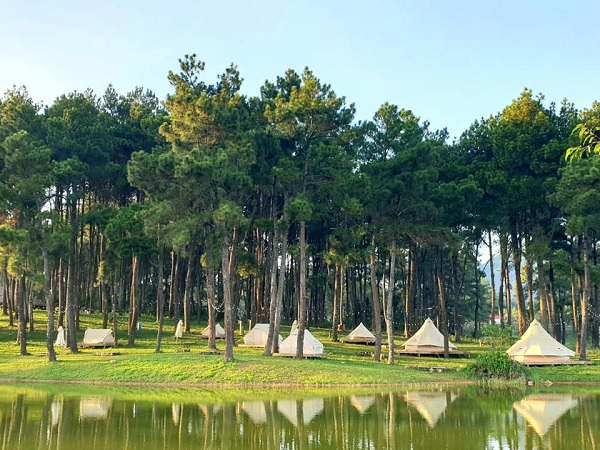 Sở hữu nhiều bãi cỏ xanh mát, những đồi thông xanh mướt nơi đây còn là địa điểm cắm trại lý tưởng qua đêm. Chúng ta có thể lựa chọn bãi đất trống phù hợp và tiến hành cắm trại, đốt lửa, tổ chức một buổi tiệc ngoài trời cùng bạn bè, người thân.