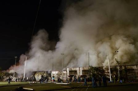 Đến 2h sáng nay lửa đã được dập tắt hoàn toàn, song lính cứu hỏa vẫn phải phun nước đề phòng đám cháy bùng phát trở lại.