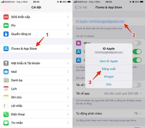 Đăng xuất Apple ID và đăng nhập lại