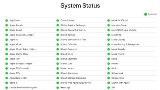 Kiểm tra trạng thái các dịch vụ của Apple