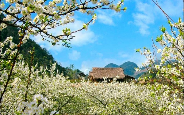 Tuy nhiên, để có thể cảm nhận được nét đẹp nơi đây chúng ta nên đi vào khoảng trước Tết và ngay sau Tết âm lịch để ngắm nhìn những hàng cây hoa đào, hoa mận nở trắng xen lẫn màu hồng hai bên đường đi vào bản làng.