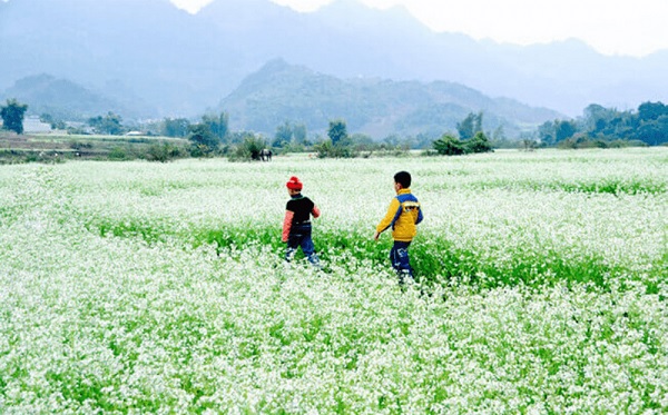 Ghé thăm bản Thung Cuông vào tháng 11 chúng ta sẽ được tháy một vẻ đẹp khác biệt với các mùa khác trong năm. Những bông hoa cải trắng tinh khôi đang được bao phủ trên khắp bản làng nhỏ lấp ló là những căn nhà của đồng bào sinh sống, những đứa trẻ đang tung tăng nô đùa khắp khu vực vườn cải tạo nơi đây như chốn bồng lai.