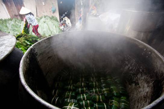 Ngoài việc phải thuê người rửa lá dong và gói bánh, các gia đình ở đây phải thuê thêm người làm đủ mọi công đoạn khác như thái thịt, làm nhân, luộc bánh... Mức thù lao tùy theo tay nghề của thợ, thấp nhất là 150.000 đồng/người/ngày.