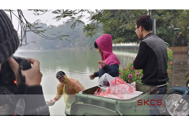 Ý thức người dân thủ đô đã tăng lên đáng kể khi không còn vứt túi nilon bừa bãi xuống hồ nữa, thay vào đó là luôn có những thùng rác như thế này.