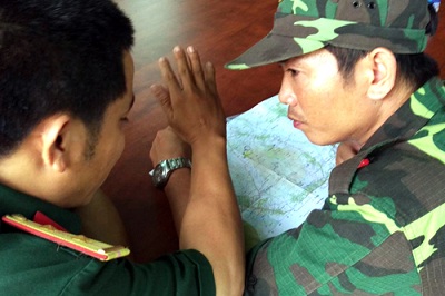 Tại phường Kim Dinh (TP Bà Rịa), ngay dưới chân núi Dinh, các lực lượng bàn bạc phương án tìm kiếm và khoanh vùng trên bản đồ một số điểm tình nghi. "Khu vực núi rất hiểm trở, không có sóng điện thoại, gây khó khăn cho việc tìm kiếm. Với sự giúp đỡ của người dân cũng như các sư thầy các chùa trên núi, chúng tôi đang tiếp cận tọa độ máy bay rơi", cán bộ tìm kiếm cho biết.
