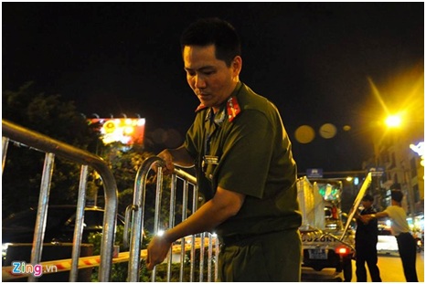 Các tuyến phố diễn ra lễ diễu binh, diễu hành đã dựng rào chắn từ 21h ngày 1/9
