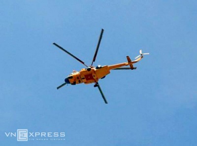 Trực thăng tìm kiếm máy bay Su-30MK2 mất tích. Ảnh: Hải Bình.