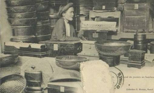 Một cửa hàng bán các phẩm từ tre nứa trên phố Hàng Bồ.