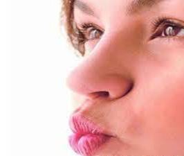 - Ngậm miệng lại, mím môi và thổi khí phồng lên phía dưới môi trên của bạn.