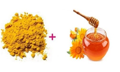 + Cho bột nghệ và mật ong vào chung với nhau rồi trộn thật đều lên, tạo thành hỗn hợp sền sệt.