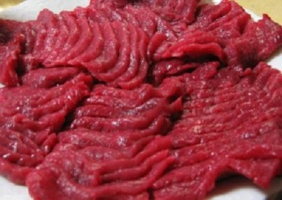 Có lẽ chỉ ở Nhật Bản thịt ngựa mới có thể được ăn sống. Đây là món ăn khá phổ biến và khoái khẩu với nhiều người dân của đất nước Phù Tang. Thịt ngựa sẽ được sơ chế, thái mỏng và ăn sống.