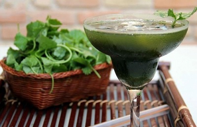 Bạn có thể giã nhuyễn rau má và lấy nước cốt thoa đều lên vùng da thâm quầng ngay mắt hoặc uống nước rau má.