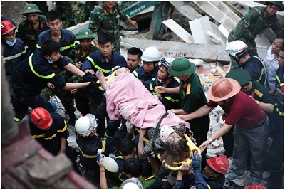 Được biết có gần 100 người đã tham gia cứu những người mắc kẹt, gồm cảnh sát phòng chữa cháy, cứu hộ, công an thành phố, công an quận, dân phòng và bộ đội công binh. Nhiều xe cứu thương túc trực bên ngoài, một số người sau khi được đưa ra ngoài đã chuyển đến bênh viện Xanh pôn để điều trị.