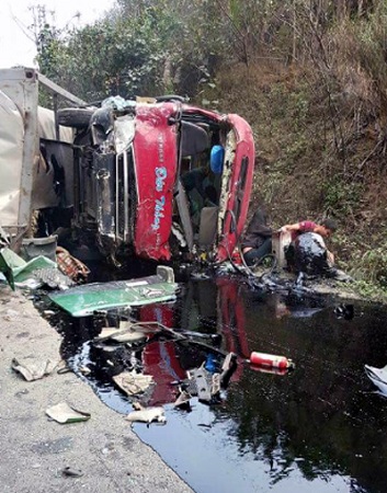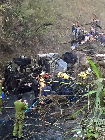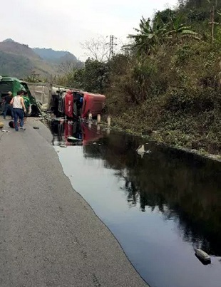 Trước đó, một lãnh đạo xã Thung Khe cho biết, vụ tai nạn xảy ra giữa xe khách loại 24 chỗ ngồi và một xe bồn chở vật liệu lỏng màu đen, giống như dầu nhớt hoặc nhựa đường.