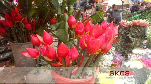 Chợ hoa Quảng Bá quả thực giống như một siêu thị khổng lồ về hoa vậy. Trong ảnh là hoa sen đỏ, không chỉ được trồng trái mùa mà ngay cả màu sắc của chúng cũng gây sự chú ý không kém.