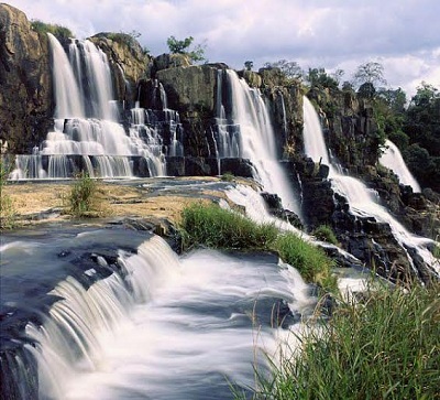 Thác Pongour (xã Tân Thành, huyện Đức Trọng) còn gọi là thác Bảy Tầng, cao gần 40m, rộng trên 100m, bao quanh là khu rừng nguyên sinh rộng khoảng 2,5ha. Pongour là thác nước duy nhất ở Việt Nam có ngày hội hằng năm vào rằm tháng Giêng.