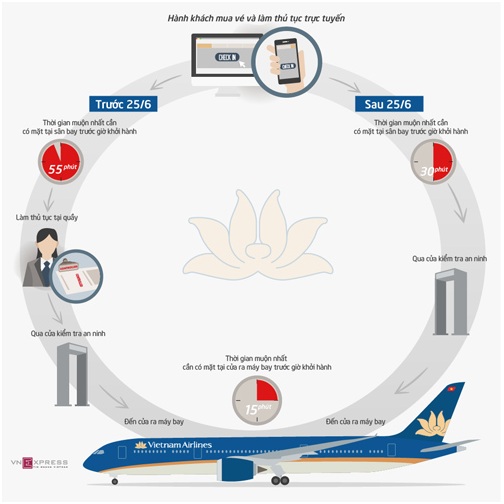 Nhưng với dịch vụ mới này, bắt đầu kể từ ngày hôm nay, các hành khách làm thủ tục trực tuyến (cả web và mobile check-in) không cần phải làm thủ tục xác nhận tại quầy mà vào thẳng cửa kiểm tra an ninh. Điều này có thể giúp hành khách có mặt ở sân bay muộn hơn, tối thiểu 30 phút trước giờ máy bay cất cánh chứ không phải 55 phút như trước đây.