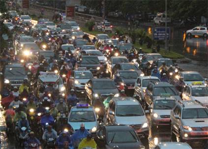 Hà Nội mưa to vào giờ cao điểm gây ách tắc giao thông và ngập úng