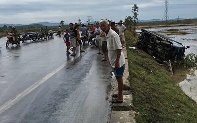 Trời mưa, ô tô đi vào những điểm trơn này không làm chủ được tốc độ. Các xe chủ yếu tự lật xuống hai bên vỉa hè, ruộng sâu.
