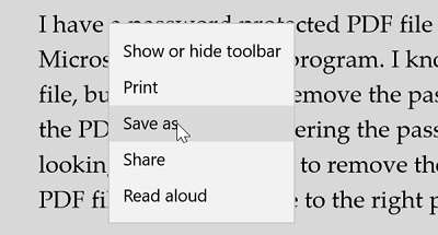 Bước 2: Nhấp chuột phải vào bất kỳ vị trí trên giao diện PDF vừa mở chọn tiếp tùy chọn Save as, chọn vị trí để lưu lại tập tin PDF và sau đó nhấn nút Save để lưu lại PDF mà không có mật khẩu.