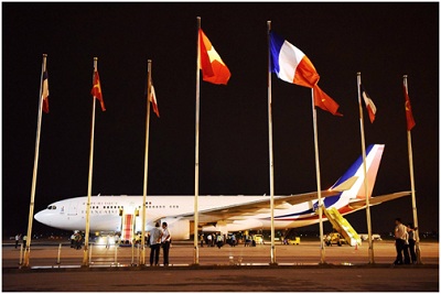 Chuyên cơ của ông Hollande đỗ tại sân bay Nội Bài. Ảnh: Giang Huy