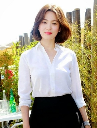Đặc biệt với tóc ngắn cup phồng kết hợp với mái rẽ ngôi giữa của cô nàng Song Hye Kyo – “Hậu Duệ Mặt Trời” sẽ khiến giới trẻ phát cuồng vì kiểu tóc dễ thương này đấy.