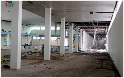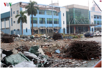 Khu vực mặt tiền của triển lãm Giảng Võ đang được tháo dỡ