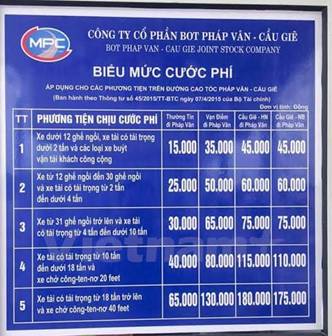 - Mức thu phí cụ thể dao động từ 10.000-180.000 đồng/vé/lượt tùy theo đoạn tuyến và theo loại phương tiện.