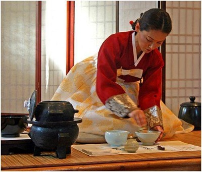 Nghi lễ thưởng trà ở Hàn Quốc có nguồn gốc từ Trung Hoa nhưng dưới sự tiếp nhận sáng tạo người thưởng thức mang phong cách riêng của Hàn với nghi lễ tìm kiếm sự thư giãn và hài hoà của nền văn hoá Korea hiện đại. Văn hoá thưởng trà Korean không quá cầu kỳ và gò bó nhưng vẫn có những nguyên tắc bắt buộc chủ yếu mang đến sự thư giãn cho người thưởng trà.
