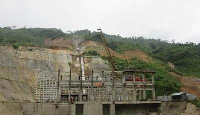 Tổng quan khu nhà máy thuỷ điện Sông Bung 2, thời điểm tháng 7/2015. Ảnh: Ban quản lý dự án TĐSB2